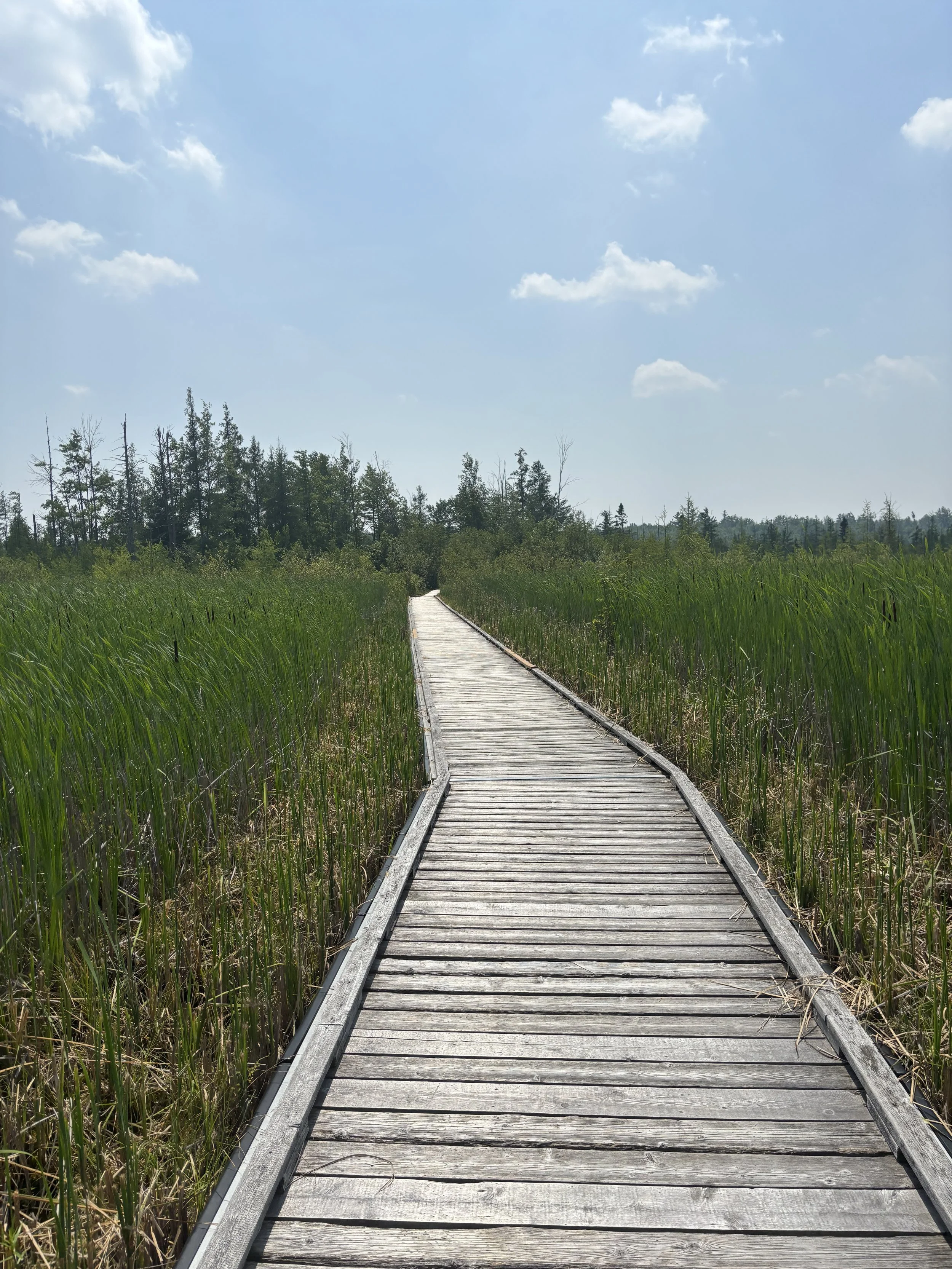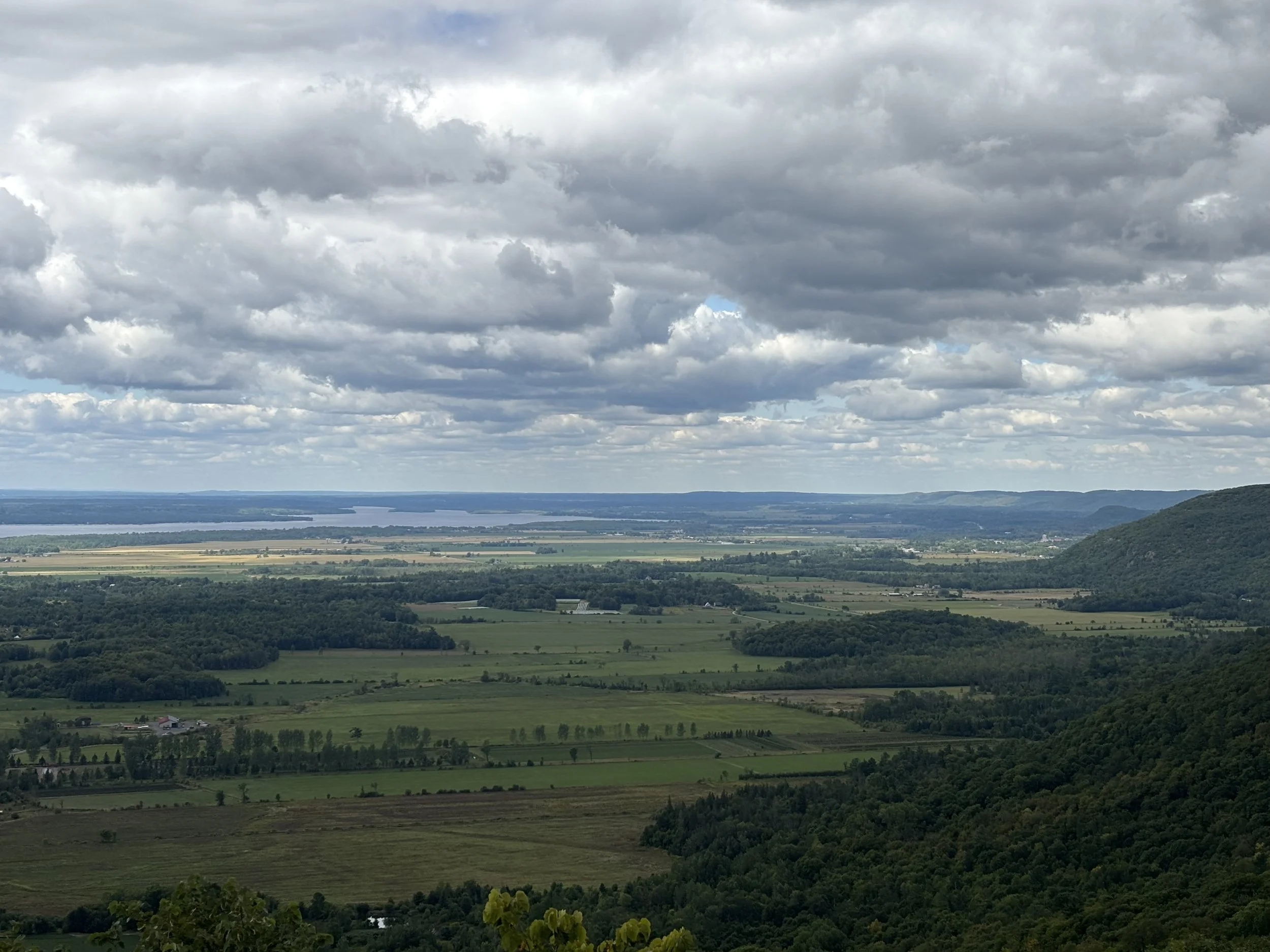 The Champlain Sea dried up 8,000 years ago, so we can only see echos of it today. Here you can sea some images from the Mer Bleu Bog south-east of the city. The Brackish water allows for shrubs and grasses to grow, but large trees can only grow away from the peaty soil. You can also see the Claridge Icon Building at Dow’s Lake overviewing Preston Street. At the time of the Champlain Sea, the surface was 150 metres above the surface of the ground. The Claridge Icon is 143 metres, meaning the tallest building in Ottawa would still be underwater. You can imagine whales swimming above and around the sky-scraper. You can also see an image of the Ottawa River in the background from the Champlain Lookout, with the river in the background, the hills on the right, and what would have been the riverbed of the valley which is now shared by forests and farms.